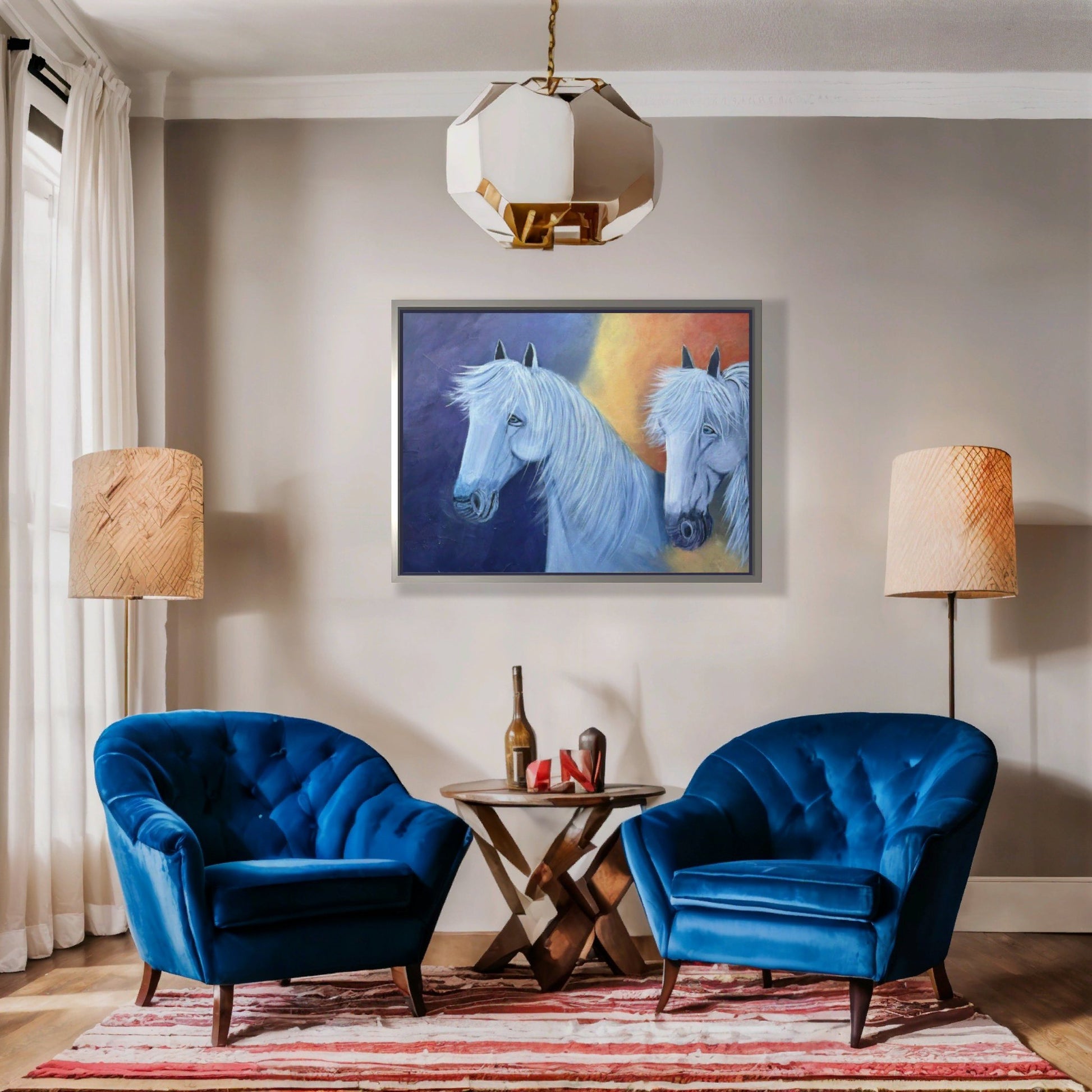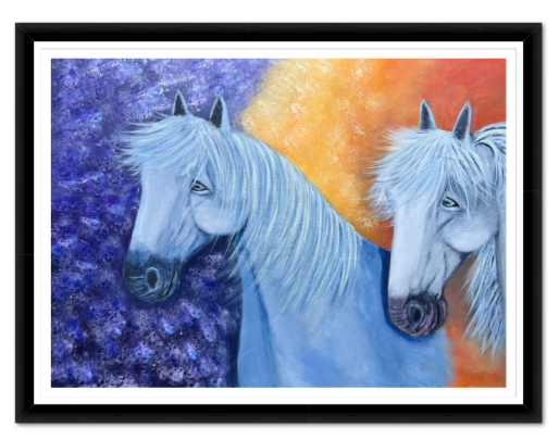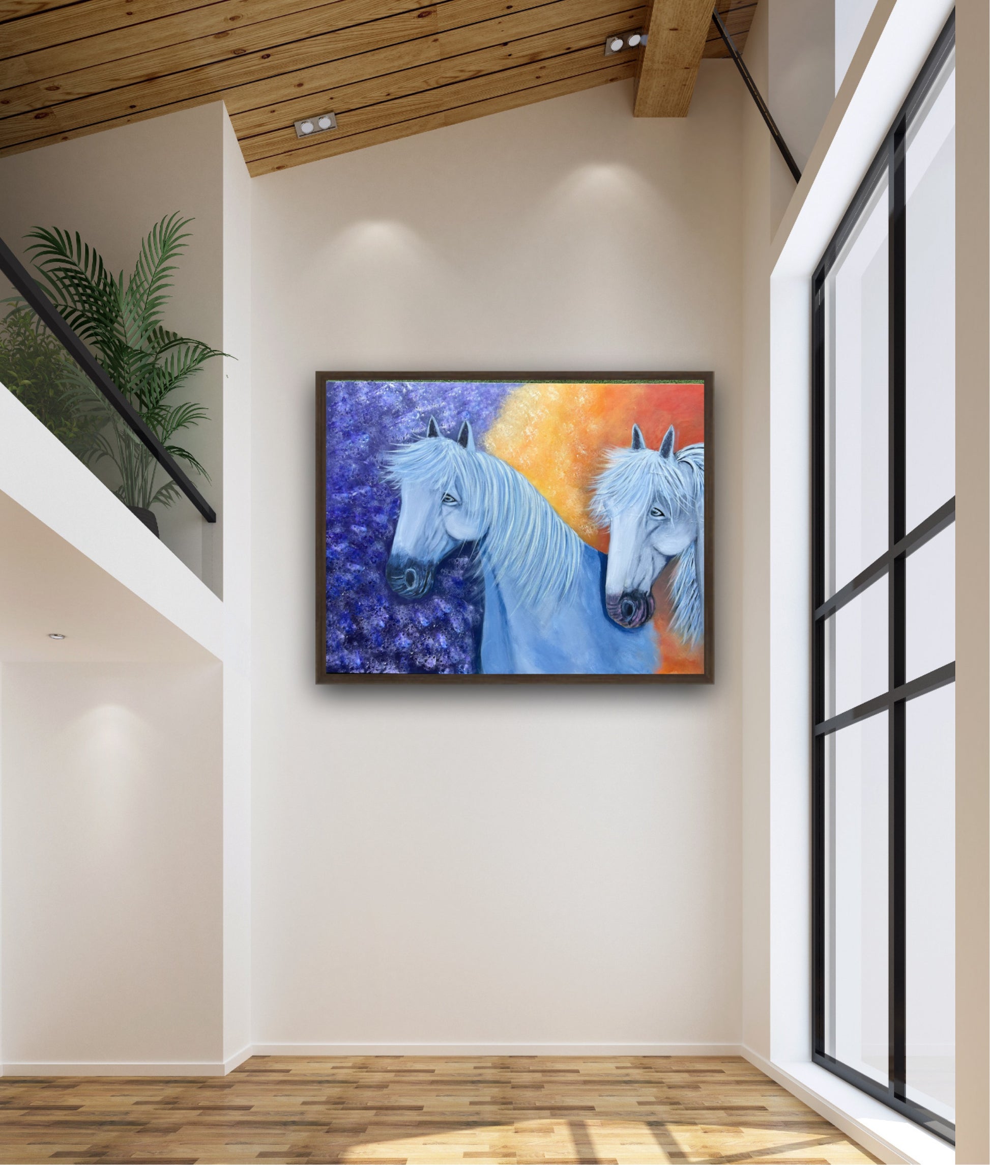 This painting symbolizes balance, companionship, and inner strength. Just like these two horses, we walk through both shadow and light, and in that in-between place, we find peace, connection, and transformation.